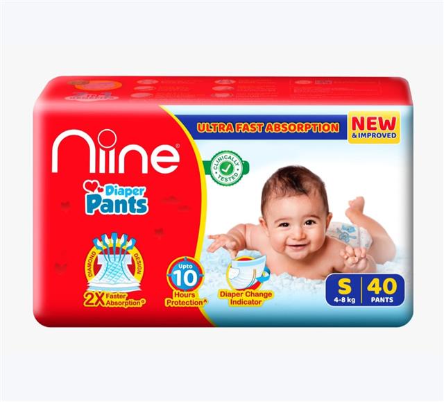 Niine Cottony Soft Baby Diaper Pants Jumbo Pack Small Size (4-8 KG) 40U